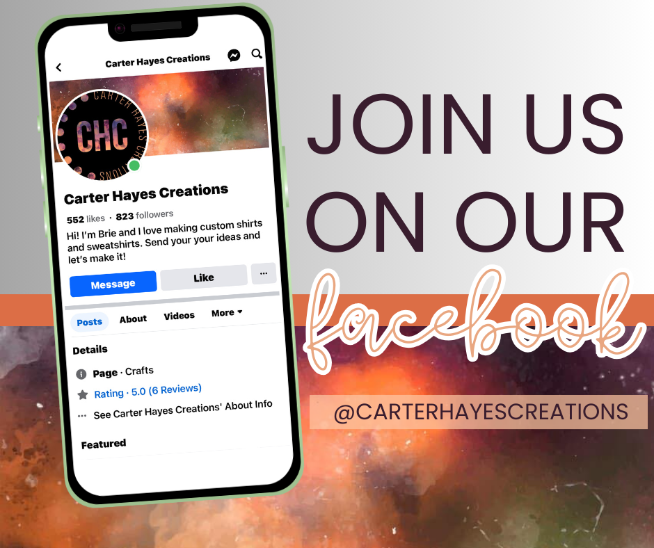 Carter Hayes Creations started in 2022. I had just left teaching and opened my in home daycare for teachers’ kids. I loved this career change, but needed something creative and for myself. I started making shirts for teachers and it soon grew from there! I have loved being able to create two businesses while being in the home and raising my kids.